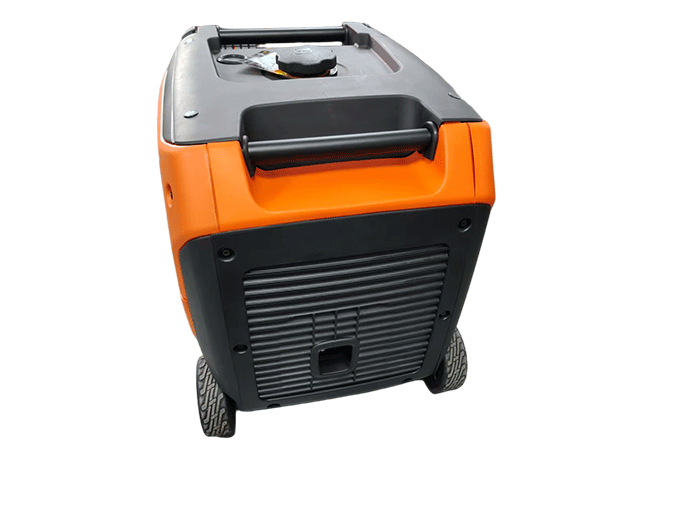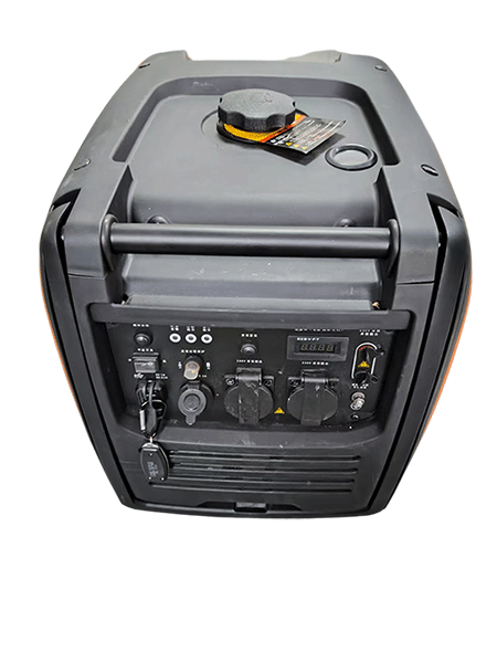 輸出功率為4千瓦,具備手拉啟動、電啟動和遙控啟動三種啟動方式。機身設有旋轉開關、手拉柄、加機油口等。配備消音器及防燙護罩,帶有兩個輪子,方便移動。面板上有兩個USB插孔、一個點煙器12V輸出、兩個230V輸出通用五孔插座、一個電壓表以及交流輸出兩個插孔和接地螺絲。