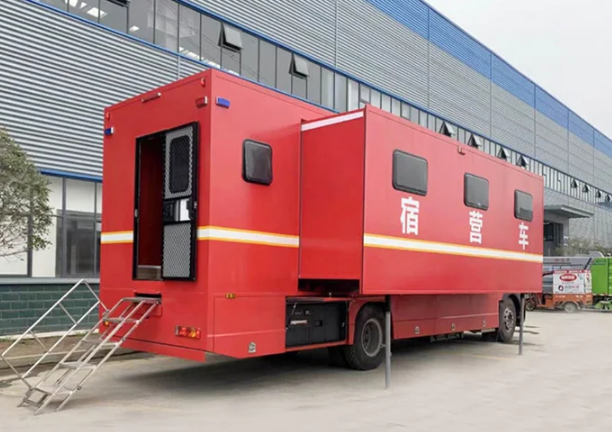 3、整車自行式設(shè)計(jì),機(jī)動(dòng)性能好,適合公路運(yùn)輸,可提供野外宿營、洗漱、休閑等功能,保障能力強(qiáng);整車配有空氣調(diào)節(jié)系統(tǒng),生活舒適度好,可雙側(cè)擴(kuò)展,空間利用率大。