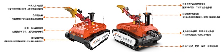 本產(chǎn)品具備滅火、音視頻偵察、有毒有害氣體偵察、災(zāi)區(qū)環(huán)境偵察功能;