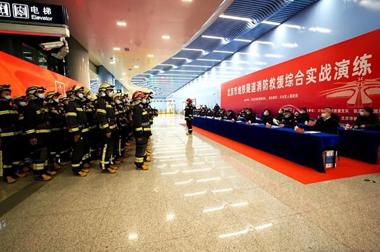 為全力做好2022年春運(yùn)服務(wù)保障工作,防范化解重大安全風(fēng)險(xiǎn),聚焦“全災(zāi)種、大應(yīng)急”救援需要和地鐵隧道火災(zāi)滅火救援處置能力,1月21日凌晨,北京市全要素地鐵隧道火災(zāi)滅火救援綜合實(shí)戰(zhàn)演練在北京地鐵大興機(jī)場線大興新城地鐵站開展。整個(gè)演練調(diào)集了10個(gè)消防支隊(duì)、52部消防車、248名消防救援人員參與。北京凌天2臺消防內(nèi)攻偵察機(jī)器人參與到此次演練中。
