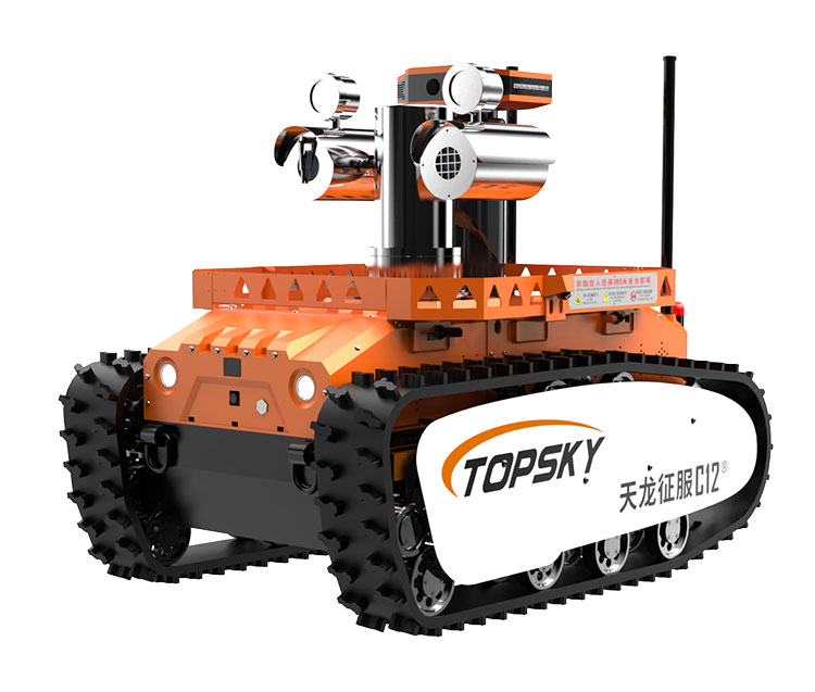 主要功能:履帶式防爆機(jī)器人底盤采用鋰電池電源作為動(dòng)力源,使用無(wú)線遙控的方式遠(yuǎn)距離操控,可搭載形式多樣,原地旋轉(zhuǎn)設(shè)計(jì)可使得運(yùn)更靈活;具備音視頻偵察、有毒有害氣體偵察、災(zāi)區(qū)環(huán)境偵察功能,對(duì)提高救援安全性、減少人員傷亡具有重要意義。