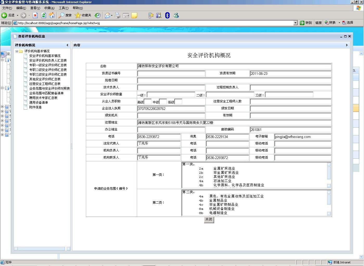 對安全評價機構資質(zhì)及業(yè)務范圍進行監(jiān)管,完成資質(zhì)的申請、變更、補發(fā)、延期、注銷的業(yè)務辦理,向社會公布評價機構名單,省外評價機構的備案,防止監(jiān)管評價機構在其許可的業(yè)務范圍外進行安全評價活動,建立全省安全評價機構監(jiān)管數(shù)據(jù)庫。