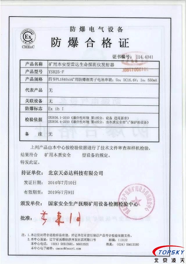 從國家安標(biāo)中心獲悉,YSR25本安型雷達(dá)生命探測儀取得煤安標(biāo)志認(rèn)證(證書見下圖),自此,國內(nèi)本安型可用于爆炸性環(huán)境的探人雷達(dá)取得完整下井資質(zhì),從研制方獲悉,該設(shè)備已在山西陽泉煤業(yè)集團救護大隊、山西潞安集團救護大隊、開灤集團救護大隊進行過工業(yè)性試驗,試驗效果良好,探測距離達(dá)到25米(報告見下圖)!