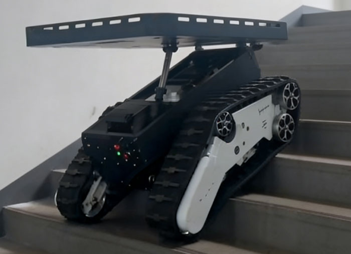 底盤采用橡膠橫紋履帶與先進避震系統(tǒng),搭配輕量化一體壓鑄鋁輪及耐用材質(zhì),可實現(xiàn)常規(guī)爬坡、極限爬坡,適配多地形穿行,保障復雜環(huán)境穩(wěn)定運行。