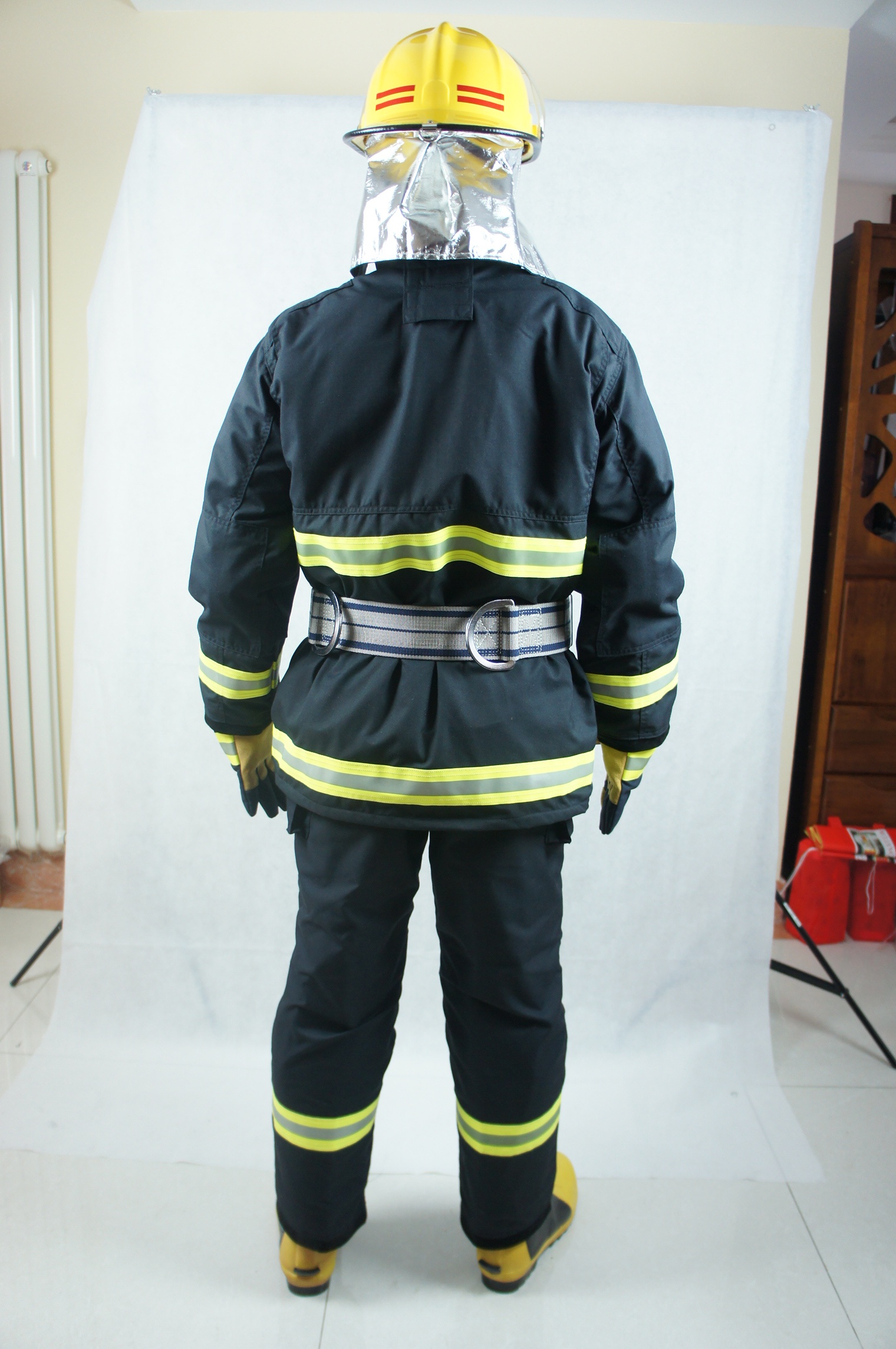 消防員在滅火戰(zhàn)斗時(shí)穿著的防護(hù)服裝。該服裝是根據(jù)GA10-2014的標(biāo)準(zhǔn)要求設(shè)計(jì)、生產(chǎn)的(該服裝符合GA10-2014的標(biāo)準(zhǔn)要求),并通過(guò)了國(guó)家消防裝備質(zhì)量監(jiān)督檢驗(yàn)中心的檢測(cè)??捎糜诖┲鹱鳂I(yè)防止熱量對(duì)人體的侵害,是滅火作業(yè)時(shí)基本、適宜的個(gè)人防護(hù)裝備